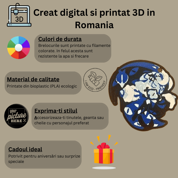 Creat si produs 100% in Romania: Produsele sunt create digital si printate prin tehnologia 3D exclusiv in Romania.