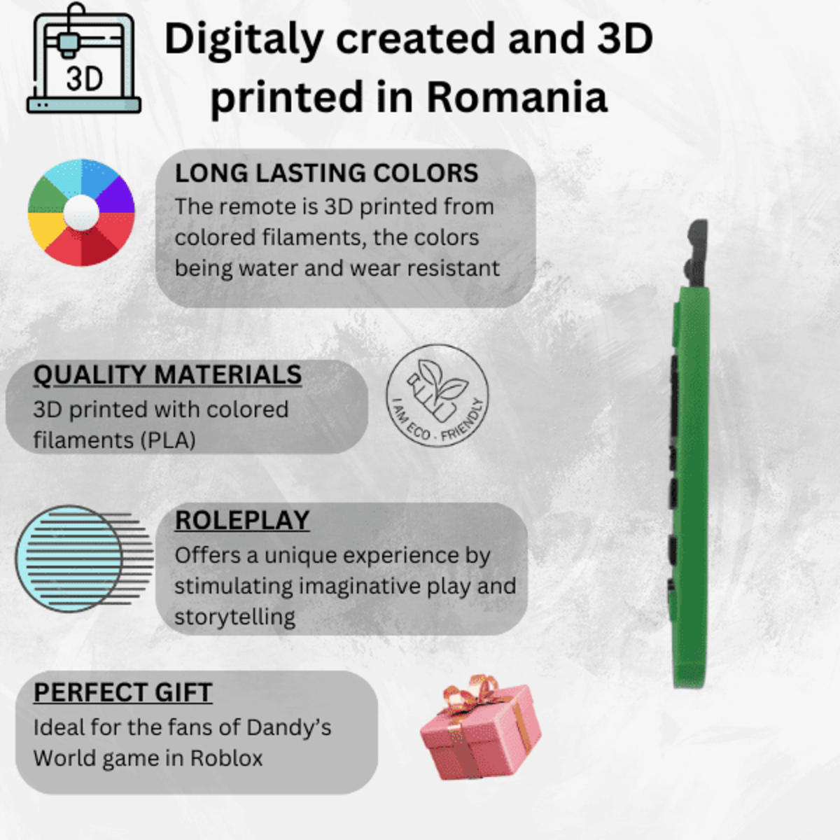 - Replica fidela: Inspirata din designul original al telecomenzii lui Vee din jocul Dandy’s World.