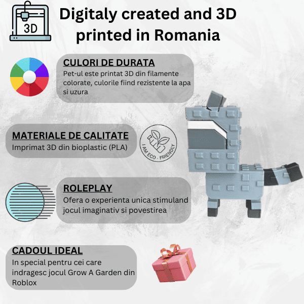 Descopera petul Raton - un pet rar din Grow a Garden (Roblox), acum disponibil ca figurina 3D imprimata in culori vibrante. Ideala pentru colectionari si fanii jocului, acest cadou unic este realizata din materiale biodegradabile si rezistente la apa. Cu un design inspirat din joc, libelula aduce un strop de magie in orice colectie!