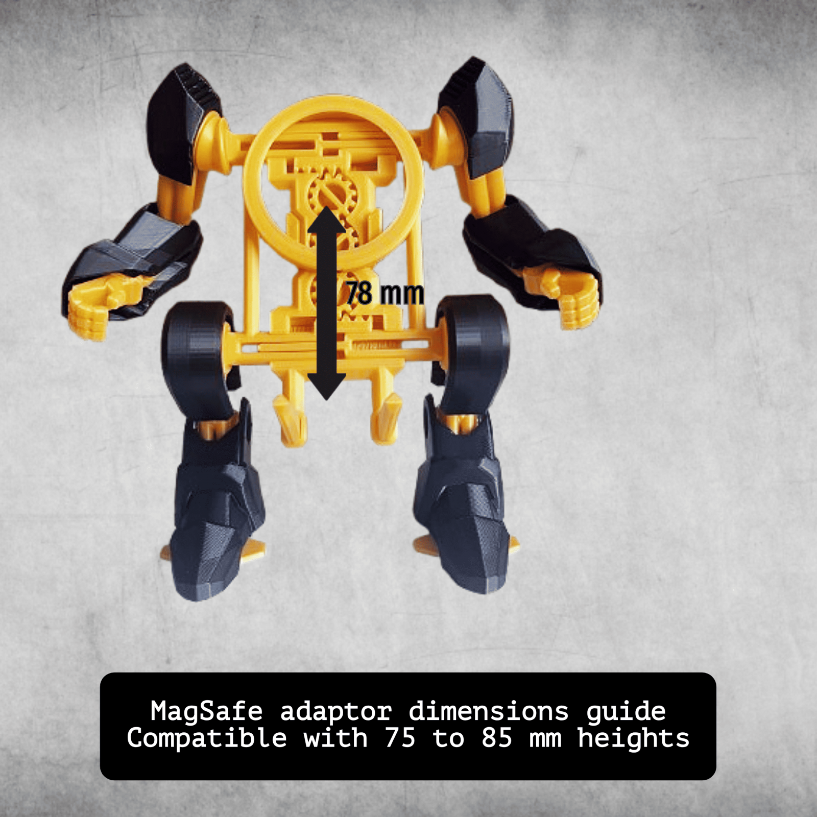 Poti opta pentru suportul special creat care se fixeaza de scheletul robotului Exo si integreaza perfect incarcatorul wireless tip MagSafe. Compatibil cu iPhone 13/14/15 Pro Max sau orice telefon care se incadreaza intre 75 mm si 85 mm (ca si inaltime de la baza telefonului pana la centrul incarcatorului tip Magsafe).