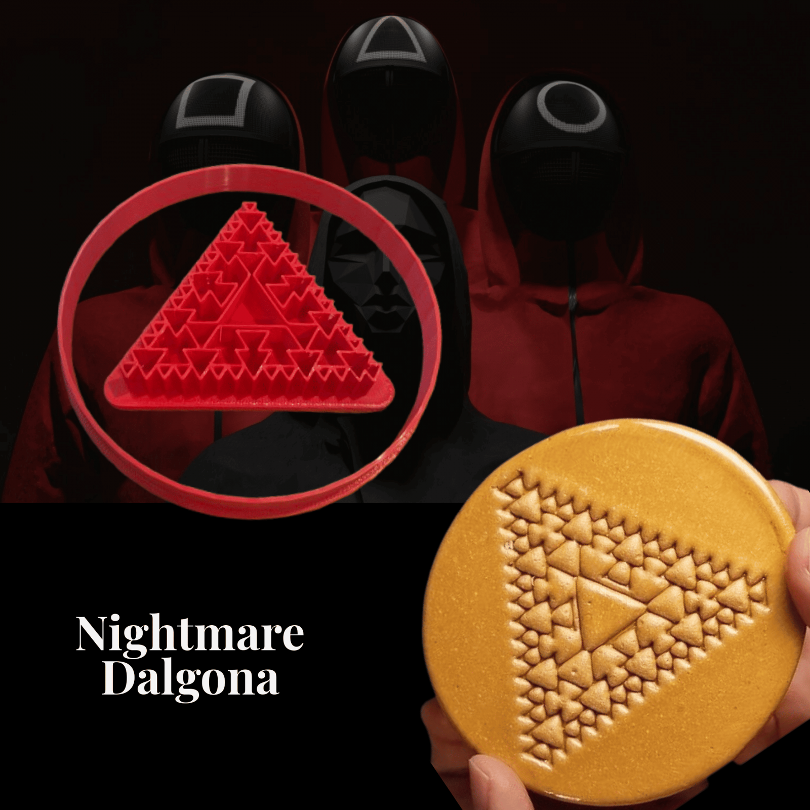 3. Set 2 forme de prajituri Nightmare Dalgona format din cercul exterior si forma triunghiulara din interior