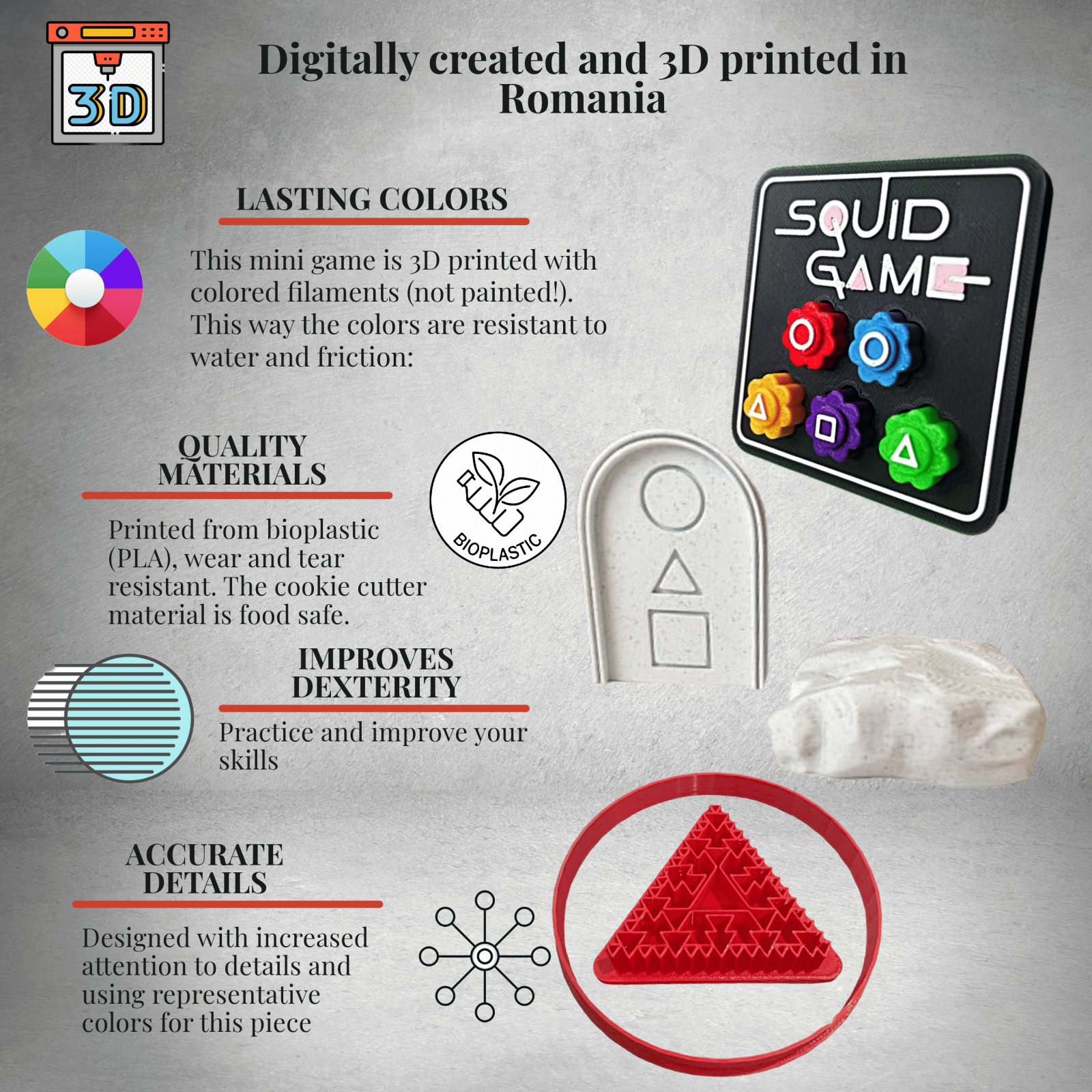 Descopera frumusetea jocurilor traditionale coreene cu acest set ce contine 3 jocuri, perfect pentru distractie in familie sau cu prietenii! Acest set imprimat 3D imbina distractia atemporala cu un design indraznet, unic, extras din serialul TV de succes, Squid Games. Piesele au culori vibrante si sunt realizate cu materiale de inalta calitate, ecologice, pentru a asigura atat durabilitate, cat si o estetica atragatoare. Perfect pentru nopti de joc, petreceri sau cadouri, acest set este distractiv si functional!