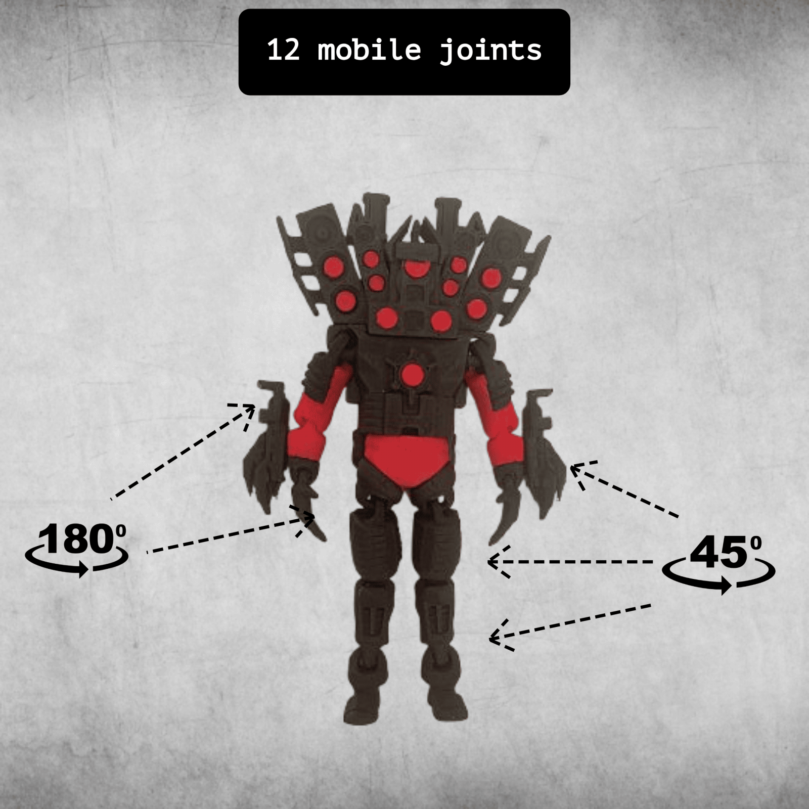 Combinatie de culori inedita: Robotul Upgraded Titan Speakerman este disponibil in varianta de rosu cu negru, culori representative pentru acest personaj. De asemenea, acesta se livreaza complet asamblat. Nu suntem raspunzatori pentru manipulare necorespunzatoare. In cazul in care doriti anumite piese sa ramana fixe acestea pot fi lipite.